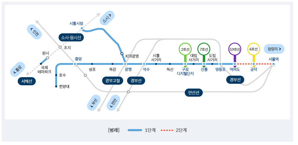 - 1단계(안산 ~ 여의도) : `19년 착공, `24년 개통 추진